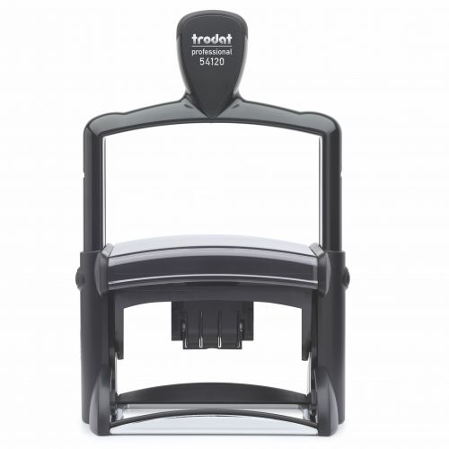 Ideal for larger messages, the Trodat Professional 54120 is a Dater stamp with a marking area of 115 x 68mm and a date size of 4mm. This unique stamp is designed for up to 14 lines of customised text allowing you the opportunity to personalise the stamp with any company information you would like to imprint. The date is easily changed thanks to the adjustable date bands and the stamp provides its user with a comfortable experience due to its ergonomic structure. To ensure you get the most use out of the stamp, replacement ink pads 6/512 are available in black, red, blue, green and violet, which will help to further extend the use of your stamp and save on cost.