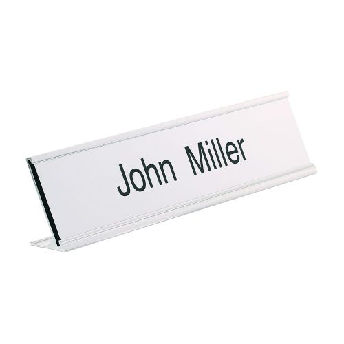 Create a professional and welcoming work environment by displaying your name and/or job title on your desk with this sleek silver nameplate. The 200 x 50 mm nameplate allows one or two lines of text, so is ideal for identifying places and people for visitors to your workplace, whether it’s a reception or the head of the department. Coming with a holder, your nameplate will fit perfectly inside allowing for a clear and easy to read sign.