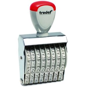 Perfect for use in a library, accounts office or at large events to mark tickets, the Trodat Classic Line 1546 Numberer creates an impression of up to 6 characters. Featuring adjustable 4mm bands, with the classic 1546 stamp, numbers are simply changed. The classic stamp uses a separate ink pad allowing you to easily alter the colour of your impression to match your brand or documents. Manufactured from durable plastic, the numberer is designed to withstand multiple and repetitive use and with the attached handle at the top, you can easily grip your stamp to create a clear and precise impression every time.