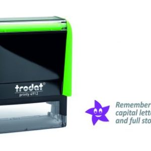 The Trodat Printy 4612 set of 5 Spelling Punctuation and Grammar Teacher Stamps offer a quick way to mark pupils school work while helping to motivate and reward them for their effort. The self-inking stamps come with a closing cap allowing for easy transportation, so there will be little chance of ink marks on clothing if carrying in your pocket. The 11 mm DIA star designs come in the following; 1 Mark, Tick, 1 Mark Tick and a Red Cross providing you with a grading system. Speeding up the marking process, this colourful stamp set is a must for teachers.